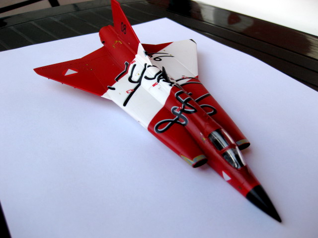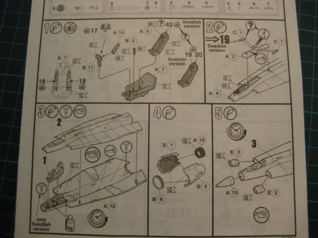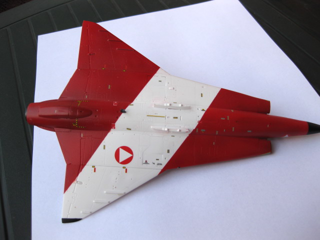 - Modellen byggs utan hjulen nedfällda, alla luckor limmas i stängt läge, modellen ska vara "flygande".