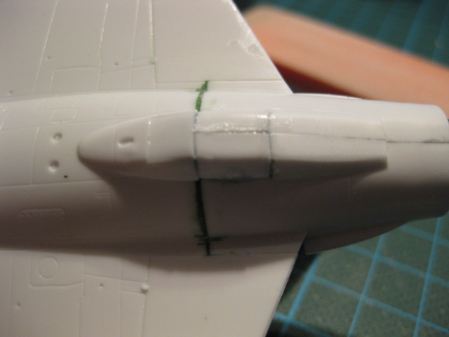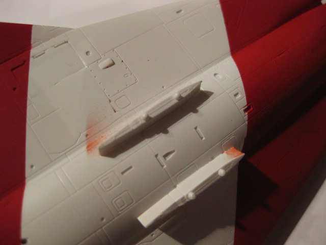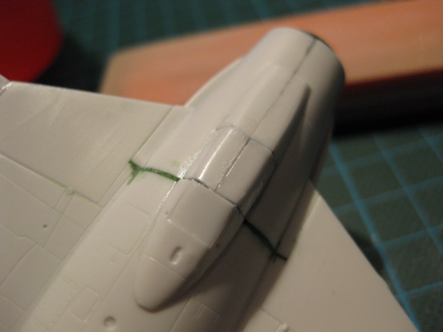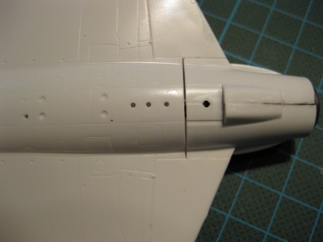 Eftersom vi bygger den österrikiska versionen så används inte luftintagen på ryggåsen, monteringshålen spacklar vi därför igen.