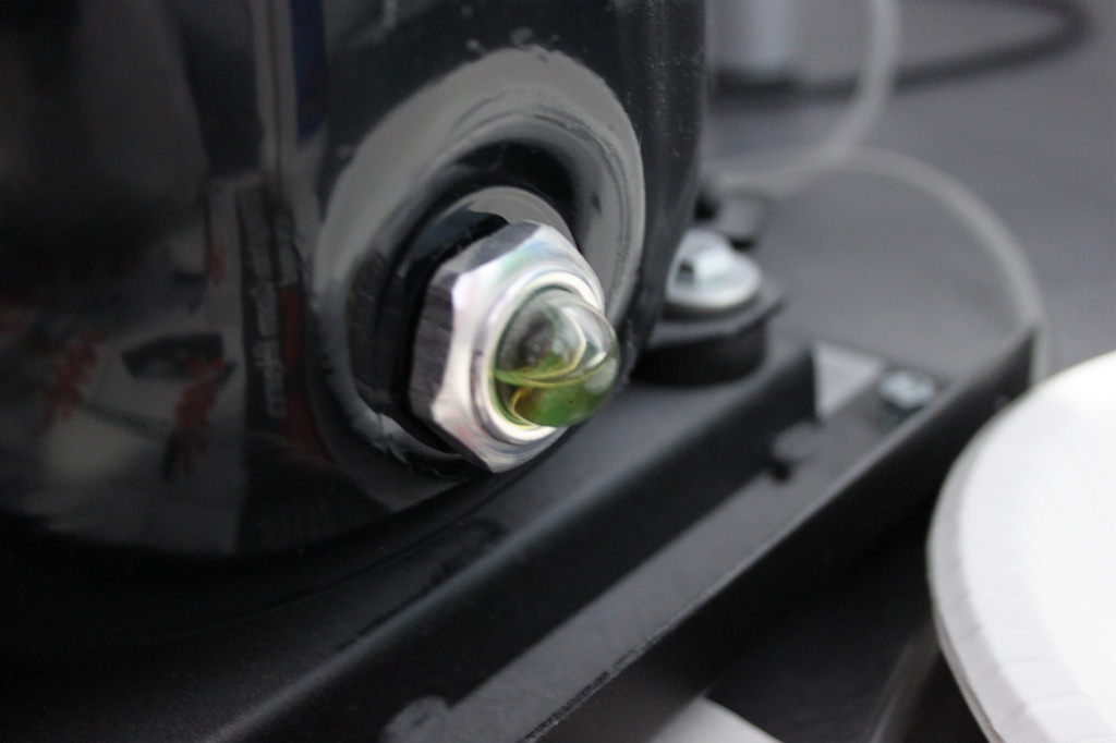 Nåja…jag fick ut all sörja och fortsatte med att kontrollera oljenivån. Kanske lika bra att byta olja. Oljenivån såg bra ut, halva "glasögat" fullt, helt okej. Jag beslutade att avvakta med oljebytet, för tillfället i alla fall. Jag testade kompressorn och allt funkade bra. Dock behöver filtret i vattenavskiljaren bytas, för det var nedsmutsat av sörjan. Jag letade på nätet efter reservdelar men hittade inget filter. Eftersom hela vattenavskiljaren mer eller mindre hade dränkts i oljan så beslutade jag mig för att helt enkelt köpa en helt ny vattenavskiljare. Gick lös på 700 kr, men så fick det bli!