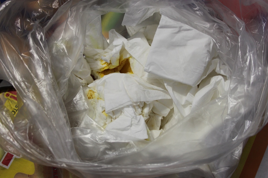 Fram med tidningar på golvet, en hög med torkpapper och satte sen igång att skruva av huven för att komma åt dräneringsventilen. Jag fyllde upp tanken med luft och öppnade ventilen….det spottades ut gul-brun vätska som luktade gammal olja…jag fick fylla tanken igen…luftade ventilen…ännu mer sörja kom ut. Jag upprepade detta cirka sju gånger, det gick åt en hel del papper kan jag säga. Det var nog cirka en deciliter vätska som kom ut. Jag misstänker att olja från kompressorn har spillt över i lufttanken, jag tömde nämligen inte kompressorn på olja innan jag transporterade den i flytten till Helsingborg…